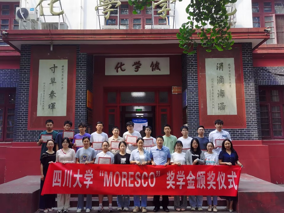此次颁奖典礼在庄重而热烈的氛围中圆满落幕,最后与会老师和获奖同学在化学馆前合影留念。至此,MORESCO奖学金颁奖典礼圆满落幕,但那份对知识、对未来的向往与追求,却将永远留存在每个获奖学生的心中。愿他们在求学之路上不断前行,闯出属于自己的辉煌未来!