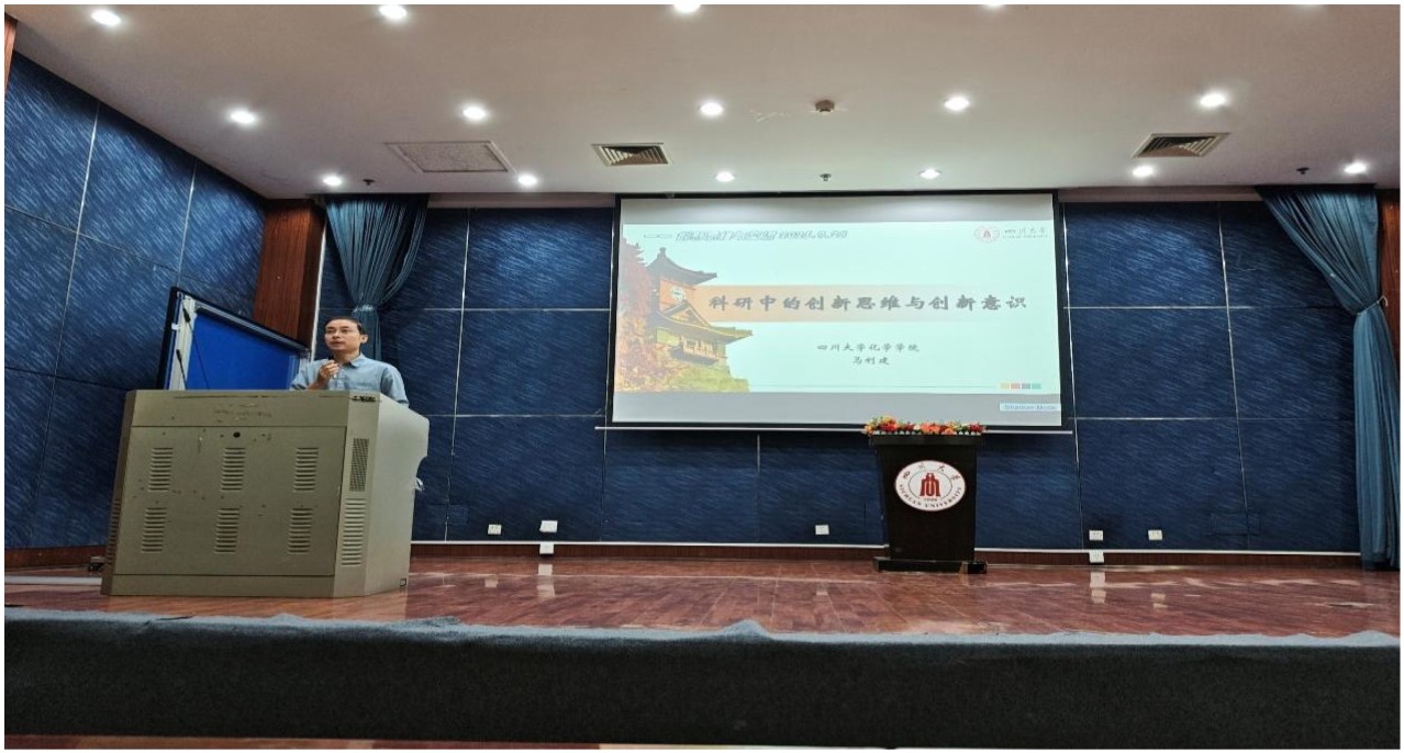 2025年9月28日晚,马利建教授在江安校区二基楼报告厅,为新葡的京集团3512vip官网2025级化学类专业的本科生带来了一场题为“科研中的创新思维与创新意识”的专题讲座。讲座围绕科研创新的重要意义展开,旨在激发学生的创新意识,提升科研素养,深化对学科交叉与实践应用的理解。